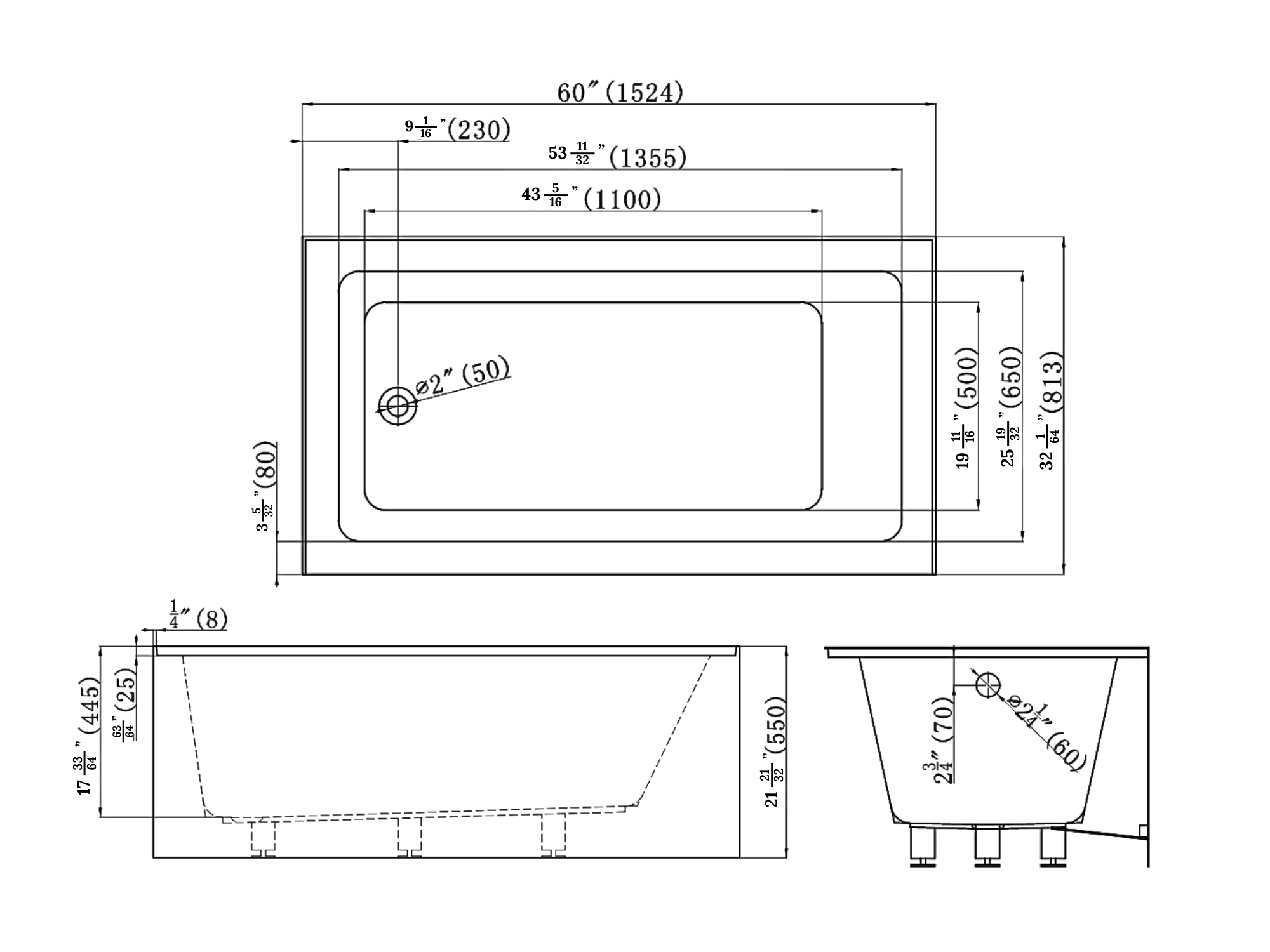 A tile flange not only looks nice but prevents moisture buildup and water from running between the tub and the wall. Adjustable feet at the bottom of the tub provide convenience for the user.